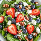 Simply’s Signature Salad -Mixed greens with Goat cheese, Strawberries, Blueberries & candied nuts (SERVES 8-10)